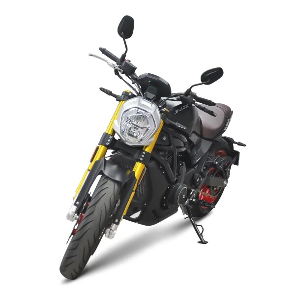 Ta 650 -kubični bencinski motocikel je zasnovan za kolesarje, ki želijo tako hitrost kot vzdržljivost v enem paketu. Odlikuje ga močan vodno hlajen motor, ki zagotavlja odlične zmogljivosti, hkrati pa ohranja učinkovitost goriva pri samo 2,6 l na 100 km. Pri sprednji in zadnji hidravlični vzmetenju vožnja ostane gladka in udobna tudi pri visokih hitrostih. Največja hitrost 150-160 km/h je idealna za iskalce vznemirjenja, medtem ko napredna LED osvetlitev in merilnik hitrosti TFT povečujeta vidljivost in nadzor. Ne glede na to, ali se vozite, raziskujete ali dirkate po LJJUBLANI, MARIBOR, CELJE, KRANJ, VELENJU, ta motocikel v slogu uličnega borca prinaša vrhunsko izkušnjo po veleprodajni ceni.